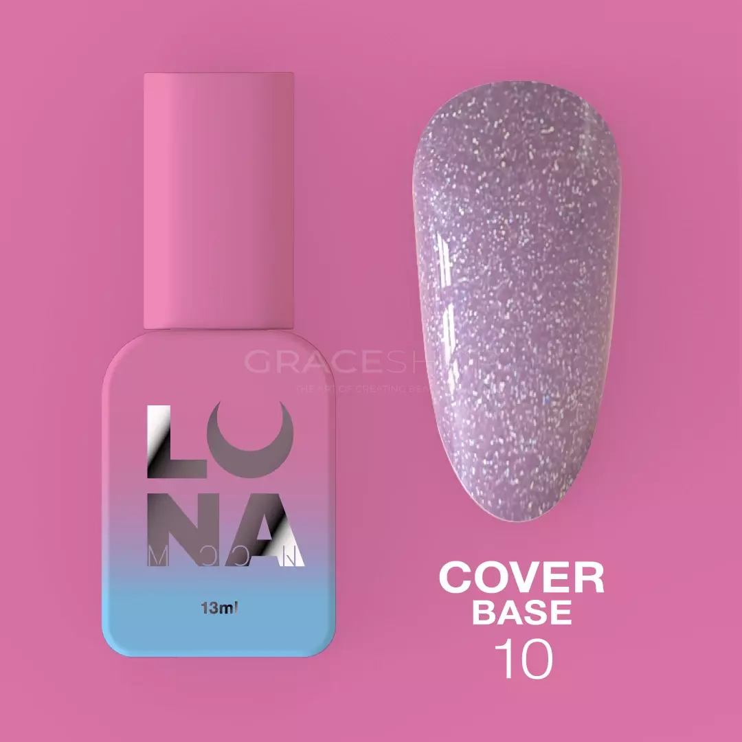 Cover Base №10 — це камуфлююча база з блискітками. Ця колекція відмінно розподіляється по нігтях та утворює красивий відблиск. Вона красиво виглядає в глянцевому варіанті, а ще цікавіше в матовому.