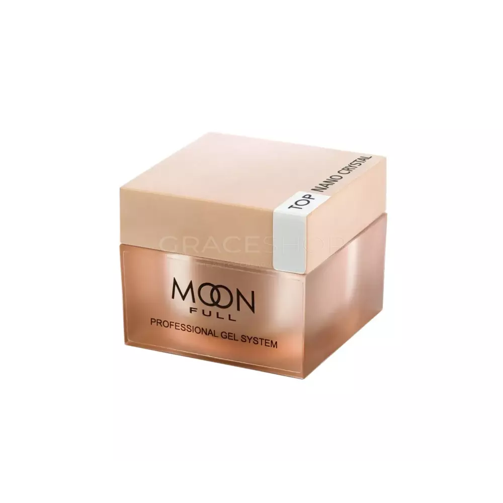 Moon Full Top Coat Nano Crystal — професійний топ без липкого шару, що створює прозоре кришталеве покриття з глянцевим блиском.