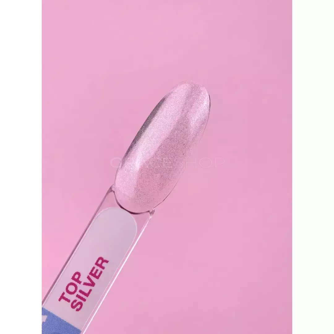 Top Silver — це топ з блискітками, без липкого шару, який буде гармонійно виглядати з будь-яким кольором на нігтях. Він здатний зробити ваш манікюр цікавим та незвичайним.