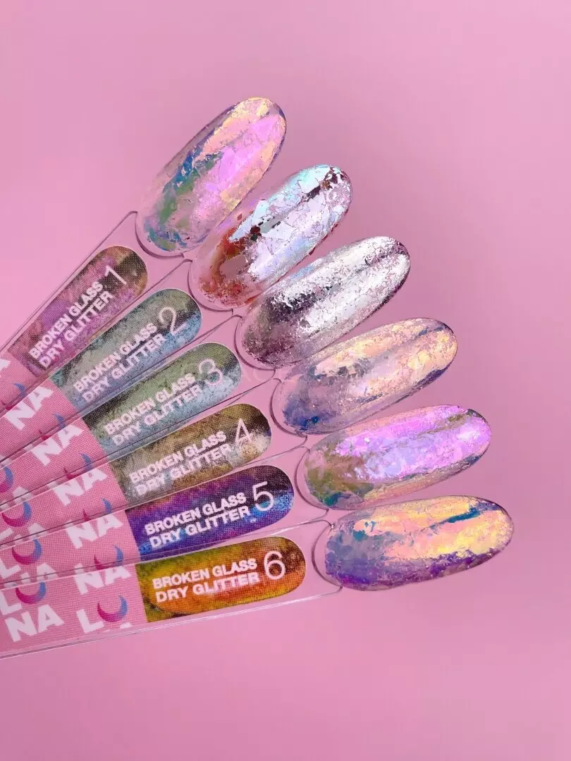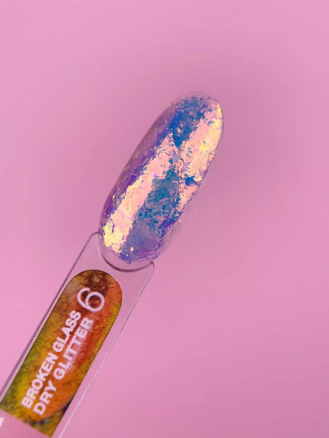 BROKEN GLASS DRY GLITTER SET (a collection of 6 different shades of glitter) are dry glitter in the form of thin flakes that are intended for design.