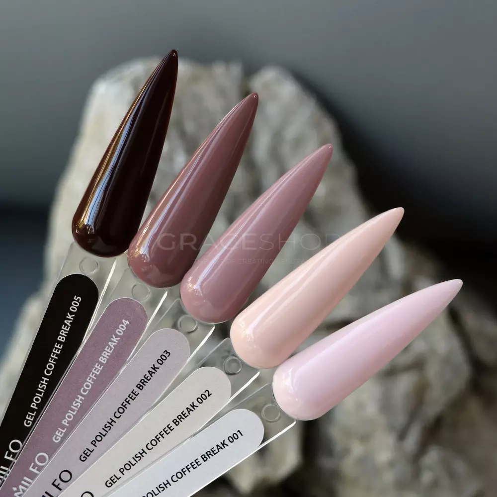 Coffee Break від Komilfo — це колекція гель-лаків, створена під настрій ароматної кави та затишних моментів відпочинку. Лінійка об’єднує теплі, насичені та глибокі відтінки, які перегукуються з улюбленими кавовими напоями та їх атмосферою.