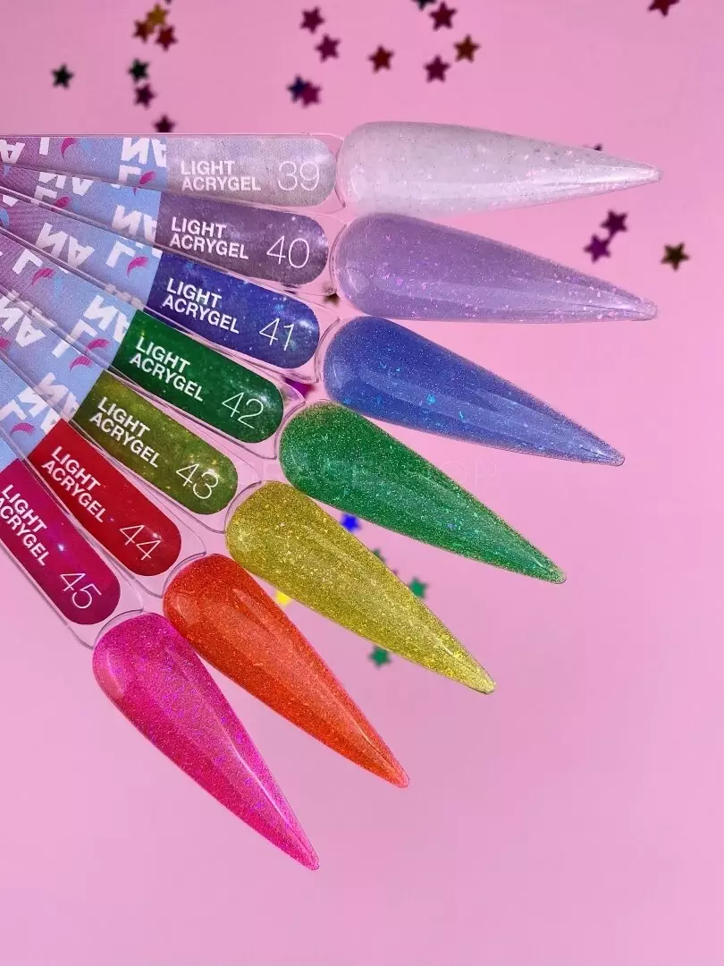Light Acrygel is a gel for coating and nail extensions. It advantageously highlights any design and is combined with various color palettes. Light Acrygel is light and easy to work with, allowing you to create nails of not very long length.