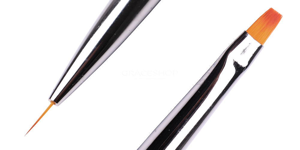 The Komilfo Double Gel flat 4 (Nylon)/Liner 7 (Nylon) brush has a rectangular shape on one side, which allows you to pick up and spread the right amount of material on the nail, as well as apply it in a thin layer. And on the other hand, a long, thin brush made of synthetic fiber for drawing thin, long lines. Brushes made of artificial material are especially recommended for acrylic paints and work with gel.